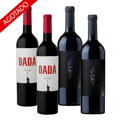 Selección compuesta por 2 botellas de y 2 botellas de Dadá Art Wine nº 2 – Mokka de Bodegas Finca Las Moras, Mendoza (Argentina) y 2 botellas de Judas Reserva Malbec de Bodegas Sottano, Mendoza (Argentina).