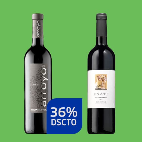 Colección compuesta por 1 botella de Tinto Arroyo Reserva 2016 de Bodegas Santiago Arroyo, D.O. Ribera del Duero (España) y 1 botella de Enate Reserva Privada 2016 de Bodegas Enate, D.O. Somontano  (España).
