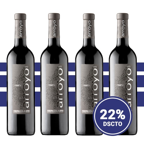 Colección compuesta por 4 botellas de Tinto Arroyo Reserva 2017 de Bodegas Santiago Arroyo, D.O. Ribera del Duero (España).