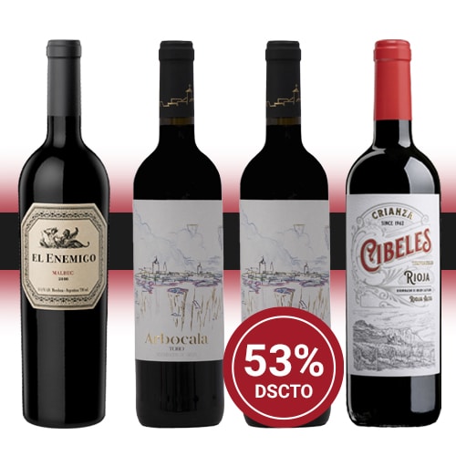 Colección compuesta por1 botella de El Enemigo Malbec de Bodegas Aleanna, D.O. Mendoza (Argentina), 2 botellas de Arbocala 2020 de Bodegas Palacio de Villachica, D.O. Toro (España) y 1 botella de Cibeles Crianza 2019 de Bodegas Sonsierra, D.O. Ca. Rioja (España).