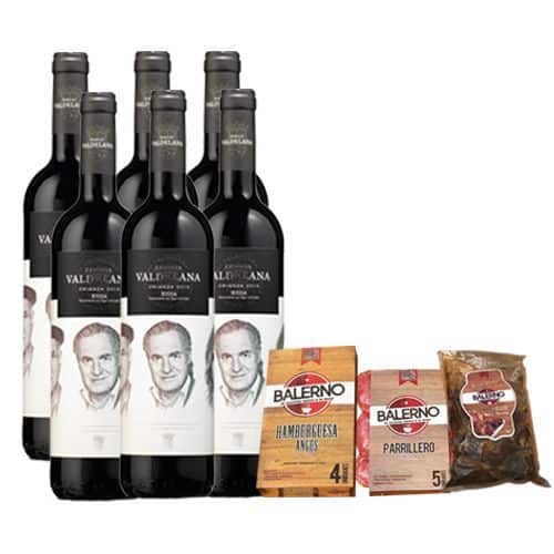 Colección compuesta por 6 botellas de Valdelana Crianza 2015 de Bodegas Valdelana, D.O.ca. Rioja (España), 1 paquete de Hamburguesas Angus x4 unidades, 1/2 kg de Chorizo Parrillero y 1 paquete de Alitas BBQ x16 unidades – Productos 100% artesanales de Balerno.