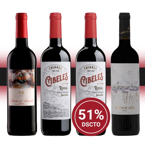 Colección compuesta por 1 botella de  Señorío de Amézola 2017, de Bodegas Amézola de la Mora, D.O. Ca. Rioja (España), 2 botellas de Cibeles Crianza 2019 de Bodegas Sonsierra, D.O.Ca. Rioja  (España) y 1 botella de Arbocala 2020 de Bodegas Palacio de Villachica, D.O. Toro (España).