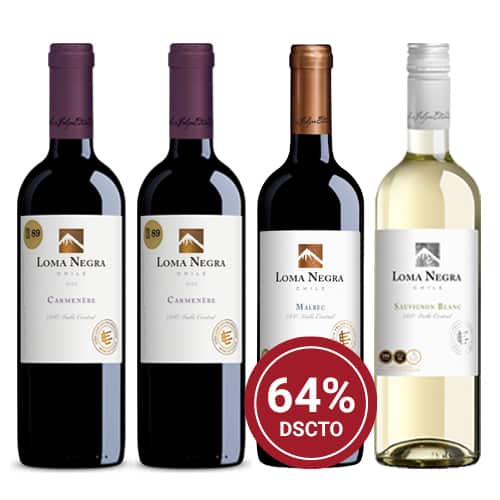 Selección compuesta por 2 botellas de Loma Negra Carmenère de Luis Felipe Edwards, D.O. Valle Central (Chile), 1 botella de Loma Negra Malbec de Luis Felipe Edwards, D.O. Valle Central (Chile) y 1 botella de Loma Negra Sauvignon Blanc de Luis Felipe Edwards, D.O. Valle Central (Chile)