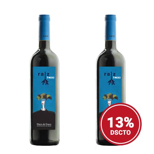 Selección compuesta por 2 botellas de Raíz 9 meses de Bodegas Raíz de Guzmán, D.O. Ribera del Duero (España).