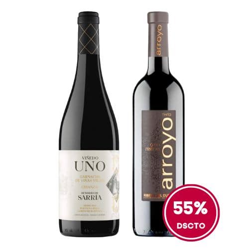 Colección compuesta por 1 botellas de Señorío de Sarría Viñedo UNO de Señorío de Sarría, D.O. Navarra (España) y 1 botella de Arroyo Gran Reserva 2015 de Bodegas Santiago Arroyo, D.O. Ribera del Duero ( España).