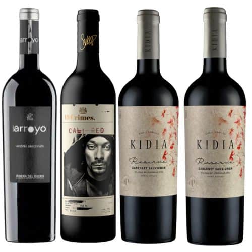 Colección compuesta por 1 botella de Arroyo Vendimia Seleccionada 2015 de Bodegas Santiago Arroyo, D.O. Ribera del Duero (España), 1 botella 19 Crimes Cali Red, de bodegas 19 Crimenes South Eastern Australia y 2 botellas de Kidia Reserva Cabernet Sauvignon de bodegas Kidia, D.O. Valle Central (Chile).