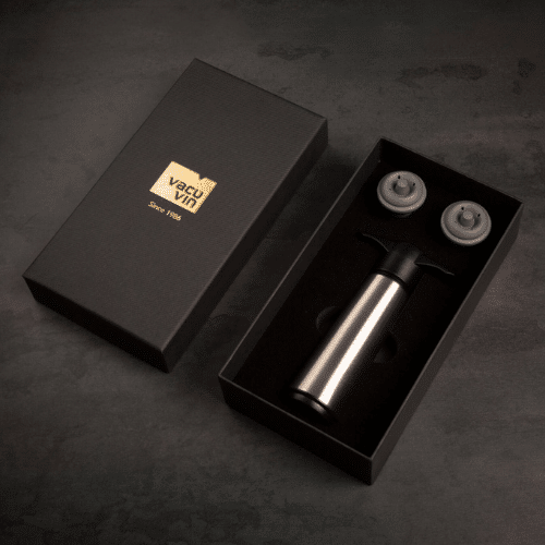 El Conservador de Vino Original Elegante Box Luxe 2 Tapones conservador de vino original elegante Vacu Vin Box Luxe. Conserve los aromas y sabores de su vino preferido. Utilice la bomba de vacío y los tapones especiales para retirar todo el oxígeno de la botella y luego de días o semanas, vuelva a disfrutar de ese mismo vino en perfectas condiciones.