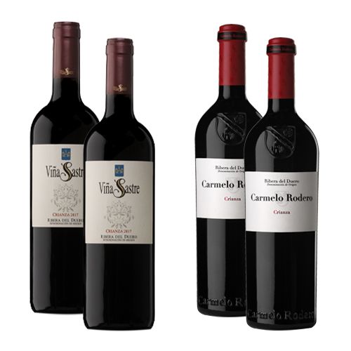 Colección compuesta por 2 botellas de Carmelo Rodero Crianza 2017 de Bodegas Carmelo Rodero, D.O. Ribera del Duero (España) y 2 botellas de Viña Sastre Crianza 2017 de Bodegas Hermanos Sastre, D.O. Ribera del Duero (España) .