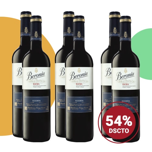 Colección compuesta por 6 botellas de Beronia Reserva 2016 de Bodegas Beronia, D.O.Ca. Rioja (España).
