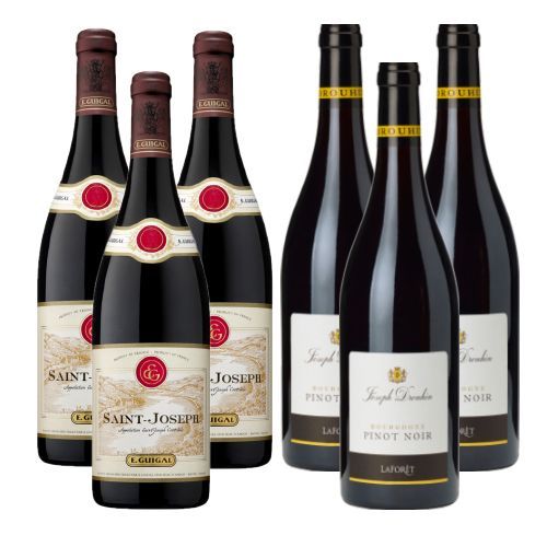 Lote compuesto por 3 botellas E. Guigal Saint Joseph Rouge de Bodega E. Guigal, A.O. C.  Saint-Joseph (Francia) y 3 botellas de Joseph Drouhin Laforêt de Bodegas Joseph Drouhin, A.O.C. Bourgogne  (Francia).